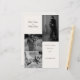 Erwecken Sie einen ersten Eindruck von Ihrer Hochzeit mit diesem eleganten Foto-Collage Wedding Menü. Das Design zeichnet sich durch ein zeitgemäßes Layout mit einer monochromen Palette aus, die Eleganz und Zeitlosigkeit verleiht. Die Einladung ist mit einem Trio von Fotos geschmückt, die Momente der Liebe und der Verbindung erfassen, perfekt zum Teilen von Verlobung oder Fotos. Auch präsentiert die Hochzeitsdetails in einem sauberen und raffinierten Format, wobei eine ausgewogene Kombination aus einem Script-Schriftart für die Namen der Paare und einer klassischen Serif für die Veranstaltungsdetails verwendet wird. Diese stilvolle Karte präsentiert eine harmonische Mischung aus modernen und eleganten Designelementen, die sich ideal für Paare eignet, die eine personalisierte, aber polierte Touch zu ihrem Hochzeitsgeschenk gewollt haben. Hinweis: Ersetzen Sie das Foto durch Ihre Fotos ab dem Foto vor der Hochzeit. M002