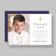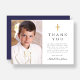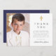 Modernes Foto der Marine Blue Cross Boy Erste Komm Dankeskarte