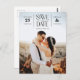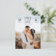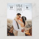 Diese Save the Date-Karte zeigt ein vollseitliches Foto mit einer einzigartigen Save the Date Überschrift, die das Hochzeitstermin, die Namen der Ehepaare und den Ort der Hochzeit in ein lustiges und trendiges Layout einfügt. Die Rückseite der Save the Date Karte ist als Postkarte Set und zum Verschicken bereit.