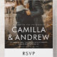 Ein modernes typografisches Overlay mit großen Namen und ein komplettes Foto mit Blutvergießen sind die Merkmale dieses alles in einer Hochzeitseinladung mit einer Antwortkarte. Klicken Sie auf die Schaltfläche Personalisieren, um dieses Design anzupassen.