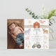 Modernes Foto Foto Green Traktor 1. Bauernhof Geburtstag Einladung Niedlich moderne Farm Geburtstagsfeier mit verschiedenen Bauerntieren, grüne Traktor, Zaun, Scheune und Sonne und ein Bereich für ein Foto. Auf der Rückseite dieses Bauernhauses wird ein Gingham oder ein kariertes Muster präsentiert.