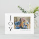 Sagen Sie es einfach mit diesen 7" x 5" Foto Grußkarten, die den Gruß "Joy" in schwarzen Buchstaben auf weißem, blauen Hintergrund enthalten. Fügen Sie einfach Ihr Lieblings-Foto, Namen und Jahr hinzu.