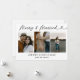 Die moderne 3 Fotos Merry & Verheiratete Weihnachtskarte ist eine stilvolle Art, Ihre erste Urlaubssaison als verheiratetes Paar zu feiern. Diese Karte zeichnet sich durch ein gepflegtes, zeitgenössisches Design aus, das mit einem großen Foto ausgestattet ist, um Ihre Lieblingshochzeit oder Ihr Lieblingsbild zu präsentieren. Die festliche Begrüßung Merry & Verheiratet wird elegant in der modernen Typografie präsentiert, was es zu einer perfekten Mischung aus Urlaubsjubeln und frisch vermähltem Glück macht. Personalisieren Sie es mit Ihren Namen, eine herzliche Botschaft, und teilen Sie die Freude Ihres neuen Lebens zusammen mit Familie und Freunden in dieser Weihnachtszeit.