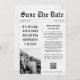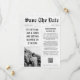 Erzählen Sie Ihre Liebe mit einer modernen Drehung in zeitlosem Stil. Dieses von der Zeitung inspiriert rett-the-date bietet ein individuelles Foto und ein elegantes Schwarz-Weiß-Design, gepaart mit einem scannbaren QR-Code für den einfachen Zugang zu Ihren Hochzeitsdetails. Eine Mischung aus klassischem Charme und minimalistischer Eleganz, das ist der perfekte Weg, um Ihre spannenden Neuigkeiten auf eine preisgünstige und unvergessliche Weise zu teilen.