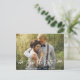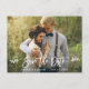Modernes Pinselskript Save the Date Verlobung Verschiedenes Foto Postcard - Weißes Script mit Blätter