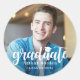 Modernes White Script Abschluss Foto Name Classic Round Sticker