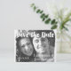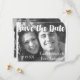 Modernes Foto mit Whimsical Script Save the Date mit Ihren Fotos vorne und hinten mit optionalen Leinenüberlagerungen auf beiden Seiten.