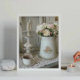 Moderne Fotografie eines Glases mit Blume auf einem Tisch mit Kerze im Shabby Chic-Stil. Das Kunstwerk verkauft sich ohne Rahmen.
