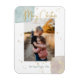 Sparkle Frohe Weihnachten Familie Foto Grußkartenmagnet, die Sie leicht mit Ihrem Foto personalisieren können. Wasserfarbe wäscht in Aqua Blau und Gold mit goldenen Sternen und elegante Skripttypografie in Gold. Personalisieren Sie Ihren Familiennamen und das Jahr.