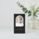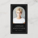 Moderne, vertikale, schwarze oder benutzerdefinierte Visitenkarten mit Ihrem bogenförmigen Foto, Namen und Titel auf der Vorderseite, mit einem dünnen weißen Rand am Kartenrand. Anpassbare Vorlagenfelder für Ihre Kontaktinformationen, Social Media und QR-Code auf der Rückseite. Sie können Hintergrund- und Schriftart-Farben ändern, Elemente verschieben und verändern.