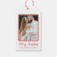 Die modernen Foto-Geschenketiketten mit ihrem vertikalen Foto, gerahmt in einem roten, wasserfarbenen Rahmen auf weißem Hintergrund, machen Ihre Urlaubsumhüllung ganz persönlich. "Frohe Weihnachten" wird in einem handgeschriebenen roten Drehbuch angezeigt, mit dem Familiennamen und dem Jahr, das unten für eine festliche Touch angezeigt wird. Ideal für Weihnachtsgeschenke, Urlaubsvorzüge und saisonale Geschenke.
