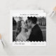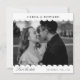 Modernes Foto mit weißer Scallop-Hochzeit speichert die Einladungskarte. Karten für Hochzeitsankündigungen. Sehr hellgraue Polka Punkte auf der Rückseite. Fügen Sie Ihr Foto hinzu.