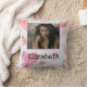 Modernes Foto Name Wasserfarbe Rosa Weiße Herzen Kissen