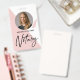 Modernes, trendiges Notary Foto Abzeichen mit Single Foto, Kontaktdetails auf einer Rose Gold und rot rosa Hintergrund. Personalisieren Sie weitere Informationen mit Ihrem Logo.