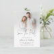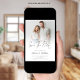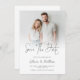 Modernes Foto Overlay QR Code Skript Hochzeit. Mit einem QR-Code auf Ihrer Hochzeitswebsite auf der Rückseite, sodass Ihre Gäste leicht Ihre Hochzeitswebsite besuchen können. Ihr QR-Code wird automatisch generiert, um den Beispielcode im Design zu aktualisieren, wenn Sie einfach die Beispiel-URL in der Vorlage mit Ihrer eigenen Hochzeitswebsite-URL ändern. Save the Date ist in einem stilvollen Set-Skript. Ersetzen Sie das Beispieltext-Foto durch Ihren eigenen Favoriten und personalisieren Sie die Erholung des Textes.
