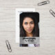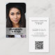Berufliche moderne Visitenkarte mit Ihrem Foto, überlagert von einem Metallstreifen aus gebürstetem Silber-Imitat und Ihrem Beruf und Namen in fett gedruckter Typografie. Fügen Sie auf der Rückseite Ihre Kontaktinformationen hinzu und geben Sie Ihre Website-Adresse ein, um einen skalierbaren QR-Code für Kunden und Kunden zu erstellen, damit Sie auf Ihre Online-Plattformen problemlos zugreifen können.