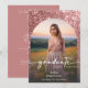 Feiern Sie stilvoll mit dieser glänzenden, modernen und künstlerischen Abschluss-Ankündigung - entworfen mit einem lustigen Flair, das sich um Sie dreht. Die Vorderseite besticht durch ihr liebstes Foto in einer Bogenform unter einem leicht dunklen und hervorgehobenen Overlay. Der Hintergrund ist mit einer glitzernden Rose rosa Glitzer Grafik. Dreh es um alle personalisierten Details auf einem Rose rosa Hintergrund zu finden, der mühelos elegant ist. Es ist der perfekte Weg, um Ihre großen Neuigkeiten mit Flair zu teilen! Dieses Design sieht am besten aus mit Fotos, die einen kostenlosen staubigen Rosa-, Rose-, Creme- oder Weißhintergrund enthalten. Erstellt von der einfachen Farmhouse Press.