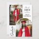 Moderne Foto Schwarz-weiß Abschluss Ankündigung beinhaltet drei Ihrer Lieblings-Fotos Ihres Absolventen, mit dem Grad der Klasse Jahr, Absolventen Name und Schule, Universität oder Uni, Abschluss, Qualifikation oder Zukunftspläne mit dem Wirblen modernen schwarzen kalligraphischen Skript-Overlay "Graduate". Fügen Sie auf der Rückseite Ihre benutzerdefinierte Nachricht hinzu. Einfach, stilvoll und elegant. Erstellt von ©2025 Evco Studio www.zazzle.com/store/evcostudio