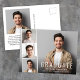 Minimal moderne Abschluss Ankündigung Postkarte mit dem Foto des Absolventen überlagert mit einem Streifen von drei kleineren quadratischen Fotos und "Graduate", ihren Namen, Schule und Klasse Jahr in der einfachen weißen Typografie. Fügen Sie auf der Rückseite ein zusätzliches Foto und eine personalisierte Meldung hinzu.