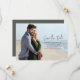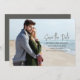 Dieses Design zeichnet sich durch einen rett-the-date mit einem Hochzeitscode aus. und fotografiert diese elegante, stilvolle Kalligrafie ist einzigartig, trendig und Vintag handschriftlich wunderbar, modern und minimalistisch, Foto Pärchen 1, weiß text Verlobung schicke, aquamarine whimsical Script Typografie Schriftart, Foto speichern die Daten, verlobten vollen Foto geblasen handschuh, moderne Kalligrafie Skript