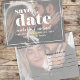 Dieses Design zeichnet sich durch ein modernes, schlichtes Foto minimalistisch aus, mit einem durchsichtigen Vellum-Foto-Overlay und einer preiswerten Postkartenvorlage. Ein minimalistisches verlobtes Verlobung-Paar, eine kreative, trendige Typografie, ein weißes, feines Textsortiment, ein schlichtes, einfaches, modernes Design, einen klassischen Whimsical-Spaß, ein klassisches Foto, ein modernes typografisches Design eine Vorlage mit einem Foto