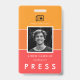 Ein modernes und minimalistisches Namensschild und Foto Abzeichen Press ID, perfekt für jeden Nachrichtenberuf: Journalisten, Reporter, Fotografen, etc.. Vollständig anpassbare Hintergrundfarben. Sie können auch einfach Ihren Strichcode oder QR Code für die Sicherheit hinzufügen.