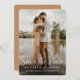 Erzählen Sie die spannenden Details Ihres Hochzeitstages mit unseren eleganten Save the Date Einladungen. Unser modernes Design präsentiert ein atemberaubendes vertikales Foto, das sich bis an die Ränder erstreckt. Das WeißtextOverlay fügt eine Touch von Eleganz hinzu und ergänzt das Bild des glücklichen Ehepaares wunderbar. Wählen Sie aus verschiedenen Papierformen und -größen, um die Einladung Ihren Vorlieben anzupassen. Das vielseitige Design-Tool erlaubt es Ihnen, dieses Foto Save the Date zu personalisieren, sodass Sie zusätzliche Modifikationen vornehmen können, die Ihren Stil und Ihre Vorlieben Anzug. Die farbige Rückseite in einer warmen braunen Farbe fügt eine raffinierte Touch hinzu, die das Gesamtbild und das Gefühl der Einladung erhöht.