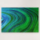 Modernes Fraktal Art Waves Wavy Green Blue Abstrak Puzzle