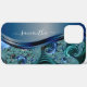 Modernes Fraktal Blauer handgeschriebener Name Case-Mate iPhone Hülle