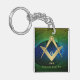 Stilvoller Goldplatz und Kompass Masonic Symbol personalisierter Schlüsselanhänger mit modernem Fraktal Hintergrund.