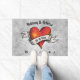 Diese Türmatte ist mit einem Tätowierherz in orangefarbenem und rotem Fraktal Design versehen. Das Herz ist mit einem Band-Banner geschmückt. Es gibt zwei Namen oben und ein Datum auf dem Banner für Sie zu personalisieren. Der Text unten lautet "Willkommen".