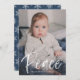 Mit dieser modernen Urlaubsfotokarte aus dem Marinesektor, die "Peace" in einem handgeschriebenen weißen Pinselskript darstellt, senden Sie herzliche Wünsche. Personalisieren Sie die Vorderseite mit Ihrem Familiennamen, während auf der Rückseite ein marineblaues und weißes Schneeflockenmuster auf einem marinen Hintergrund für ein einfaches und winterliches Finish angezeigt wird, das Ihr Foto hervorhebt.