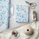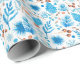 Niedliches modernes Geschenkpapier! Das Design umfasst gefrorenes blaues Blattwerk, Schneeflocken und Winterfolien.