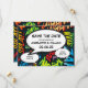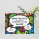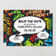 Eine lustige, coole und trendige Comic Buch inspiriert Save the Date Karte, die die Wanne, zap, pow in Ihre Hochzeitsdatum Ankündigung. Auf der Rückseite befindet sich ein passendes Comic-Buchmuster, das Sie durch ein eigenes Bild oder Foto ersetzen können. Entwickelt von Thisisnotme©