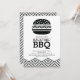 Stilvolle und moderne Schwarz-Weiß-Grill-Einladung mit einem Schwarz-Weiß-Hamburger-Set auf weißem Hintergrund mit Zickzack Zickzackrahmen. Umdreh unser beliebtes Barock und lade dich ein, um einen passenden Zickzack Rücken für eine besondere Touch zu sehen. Vergnügen Sie sich für all Ihre Sommerferien-Partys!