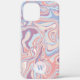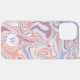 Ein modernes und funky personalisiertes iPhone Gehäuse mit einem Marmorwirbelmuster in Pastellfarben - Rosa, lila, Beige, Blau - und dem Monogramm darauf.