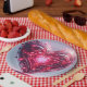 Modernes futuristisches leuchtendes rosa Herz Pappteller