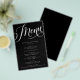 Dieses trendige Design zeichnet sich durch ein auffälliges, weißes Skript mit Schnörkeln aus. Verwenden Sie die Vorlage, um Ihre Informationen auszufüllen. Mit der Funktion "Weitere Anpassung" können Sie den Schriftart (Größe, Stil, Farbe) ändern, weitere Textzeilen hinzufügen, das Layout ändern oder Text auf der Rückseite hinzufügen. Das Papier ist ein schweres Gewicht, nicht Ihr durchschnittliches Kopierpapier. Eine großartige Wahl für ein Menü!