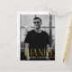 Einfache Abschluss danke Ihnen Postkarte mit dem senkrechten Foto des Absolventen mit "Dank" in gelben, modernen Deko-Schriften dargestellt. Personalisieren Sie die Vorderseite des Foto Abschluss danken Sie postcard, indem Sie den Namen des Absolventen, den Namen der Schule und Abschluss Jahr. Die Postkarte kehrt zurück, um Ihre Rücksendeadresse anzuzeigen und bietet Platz für Ihre getippte oder handgeschriebene Danksagung.