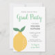 Diese moderne Lemon grad Party Einladung besticht durch eine niedliche gelbe Zitrone mit weichem grün-schwarzem Text. Personalisieren Sie diese Einladung mit den Party-Details.