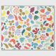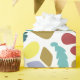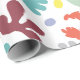 Fun moderne Geburtstagsverpackungspapier. Modern und farbenfroh mit einem zufällig verstreuten Muster Bio Formen im Flat Design Stil. Crescents, Blüten, Blätter, Fußspuren und Flecken in trendigen Farben rot, grün, blau, orange, gelb und gold. Modernes Gemustertes Schleifpapier