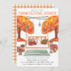 Die Herbstporchszene mit Herbstbäumen, Kürbis und ein Orangengingham-Muster auf der Rückseite verleihen Ihren Freunden und Ihrer Familie ein Erntedank-Dinner.