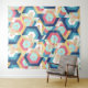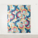 Ein sommerlich lebendiges geometrisches Muster, bestehend aus Hexagon, Quadraten, Würfeln, Dreieckslinien und Streifen Formen und goldenen Strichen. Diese abstrakte grafische Musterillustrierung, symmetrisches, kreatives Design, Mode Trend Dekorative Design ist ideal für Wohngestaltung und jeden Tag tragen. Gefüllt mit Senfgelb, vereisten Mango, lebendigen Korallen, Heidelbeerpfannkuchen, Karnevalglas, Aqua blau, dunkelblau und weiß hell fröhliche Farben. Ein stilvolles, trendiges, fröhliches, fröhliches Design, originelles Kunstwerk.
