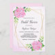 Diese Brautdusche lädt mit einem Aquarell Blumendesign mit rosa Hydrangea-Blume, Blätter und einem vergoldeten geometrischen Rahmen der Imitate ein. Es stehen auch passende Brautparty-Vorräte zur Verfügung.