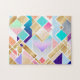 Elegante minimalistische geometrische Farbverläufe und goldenes Muster, gefüllt mit irisierenden Gradienten Pastellfarben von Rosa, Minze, Blau, aquamarin, Türkis, lila, grün und metallisch Gold Dreiecke, Quadrate, Diamant und rechteckige Formen, mit einer phantastischen modernen Linien geometrische Abbildung. Stilvolles, elegantes und schlichtes Design in Linien und Formen, das in die moderne luxuriöse Dekoration eingebunden werden kann.