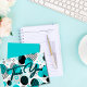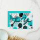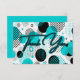 Diese coole Dankeschön-Karte zeigt ein abstraktes Retro-Muster aus den 80er-90ern mit geometrischen Kreisen, Linien und Punkten in einer Farbpalette aus blaugrünem und schwarzem Set vor weißem Hintergrund.
