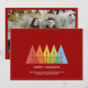Einfache, moderne Weihnachtskarte mit einer Reihe von Farben, die sich überlappende Weihnachtsbaumgrafiken und Foto der Familie (hinten). Minimalistische Typografie. Sauberes einfaches Design. Alle Textbereiche sind personalisierbar. Kontaktieren Sie uns für Hilfe bei der Personalisierung oder Anpassung an Ihre individuellen Wünsche. Gute Ferien!