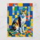 Modernes geometrisches Katzenwerk mit auffallenden Farben und abstraktem Design.