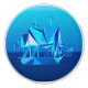 Knob in einem geometrischen digitalen Bild eines Clipper-Schiffes in den Schattierungen des Ozeans Blau, vom leichten Wasser bis zum tiefen Kobalt