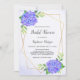Diese Brautdusche lädt mit einem Aquarell Blumendesign mit lila Hydrangea-Blume, Blätter und einem vergoldeten geometrischen Rahmen von Imitaten ein. Es stehen auch passende Brautparty-Vorräte zur Verfügung.